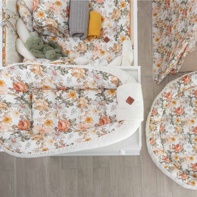 Το ρετρό floral σχέδιο με βελούδινη πλευρά συνδυάζει άνεση και κομψότητα στο παιδικό δωμάτιο.