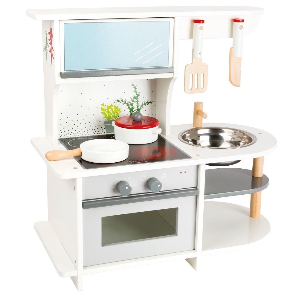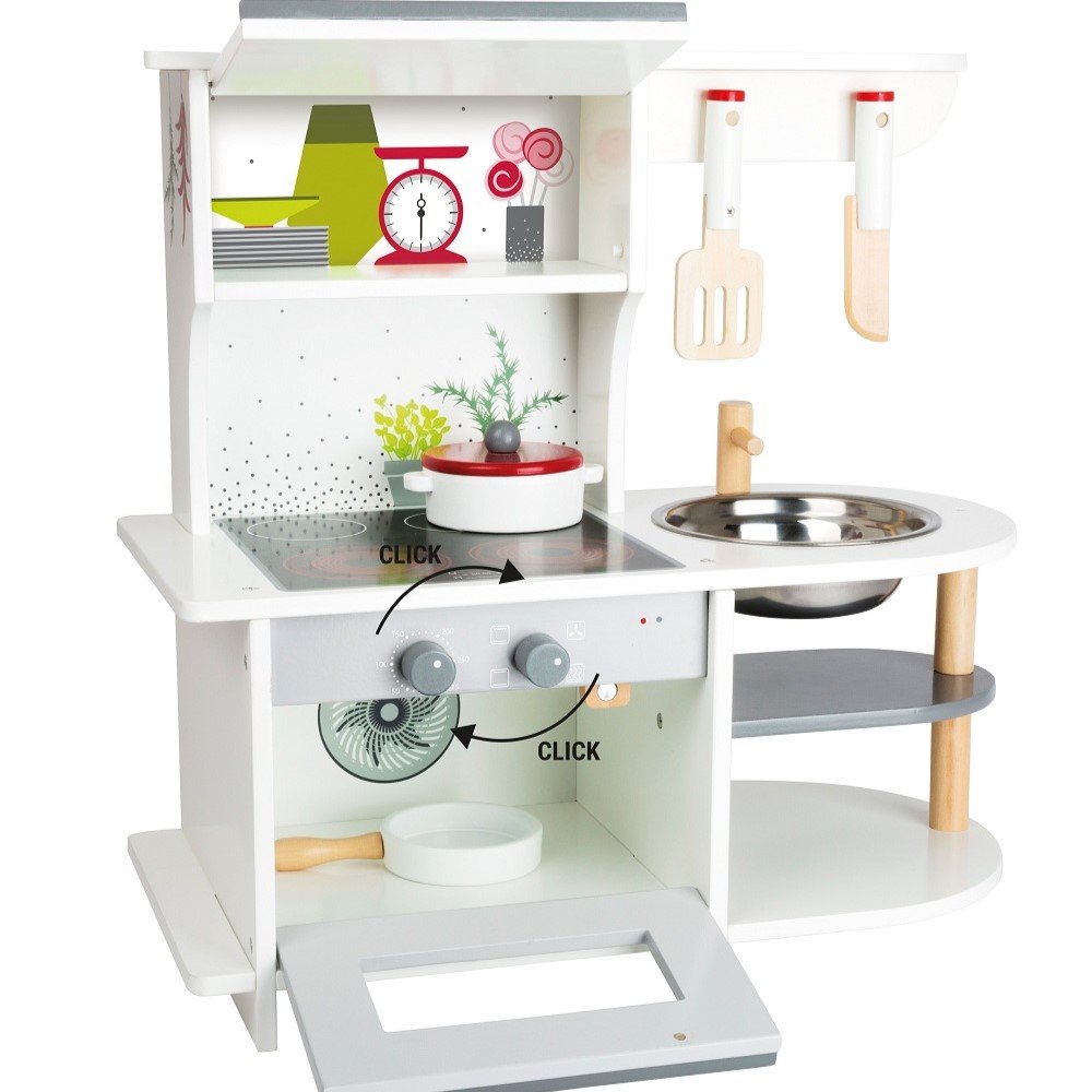 Αυτή η Παιδική Κουζίνα από Ξύλο της Small Foot απευθύνεται σε παιδιά από 3 ετών και προσφέρει ρεαλιστικό παιχνίδι ρόλων σε μικρό χώρο. Διαθέτει εστία, φούρνο και νεροχύτη, ώστε το παιδί να μαγειρεύει και να οργανώνει το παιχνίδι του. Τα περιστρεφόμενα κουμπιά κάνουν χαρακτηριστικό ήχο και ενισχύουν την αίσθηση πραγματικής κουζίνας.